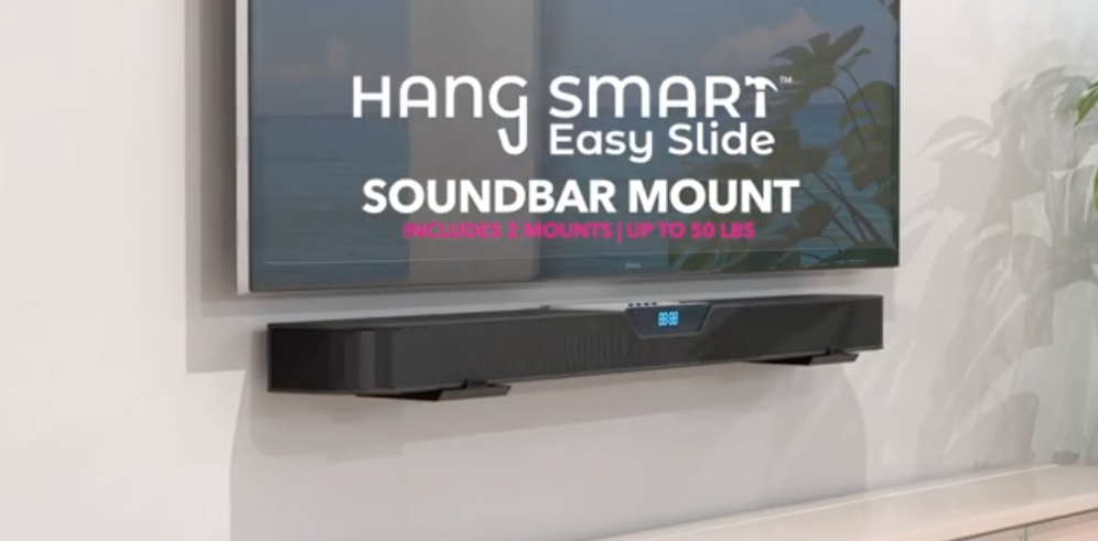 No studs. No anchors. No handyman. The same patented HangSmart® technology, perfectly sized for your soundbar, speakers, and smart devices.